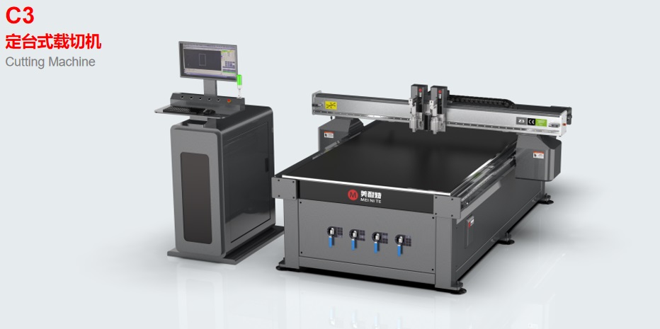 The C3 digital cutting machine is a newly developed intelligent vision-positioning cutting CNC device from MNT. It features an inline steel-structure industrial bed, a full-aluminum gantry, and a fixed vacuum adsorption table design. The bed undergoes industrial welding and stress relief treatment before being precision-machined to final form in a single setup on a high-accuracy gantry mill.
