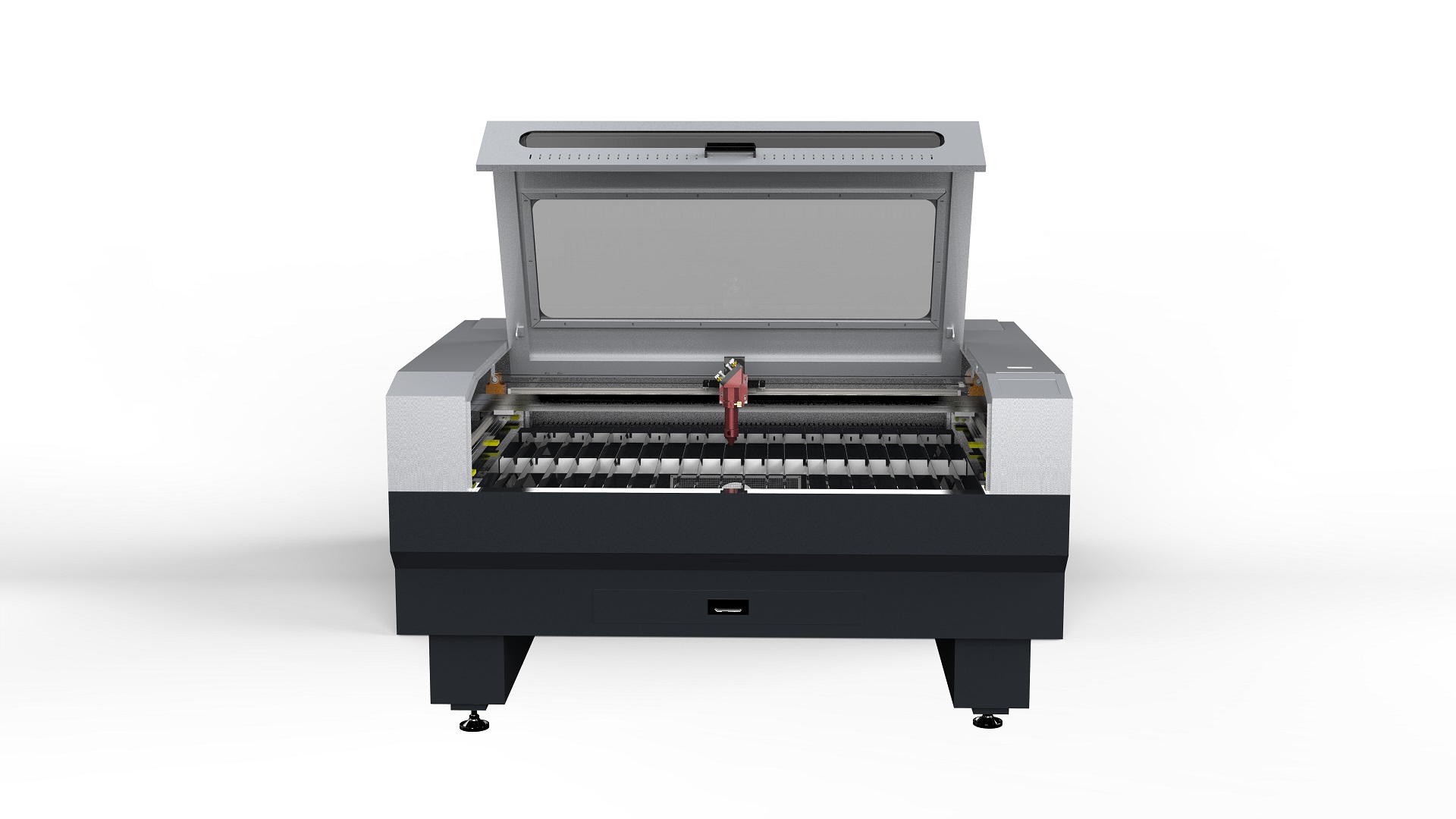 The system utilizes imported ultra-quiet linear guides to guarantee engraving precision and extended service life during high-speed operation. Optional red-light positioning and a rotary axis enable precise multi-angle processing, enhancing efficiency and saving time. An imported II-VI focusing lens improves laser output stability. Its high-speed engraving and cutting capabilities, with optimized arc cutting speeds, ensure fast processing. An optional lifting platform facilitates the machining of workpieces with varying thicknesses. An integrated LED work light provides excellent visibility of the processing area, and a built-in drawer allows for convenient waste material collection.